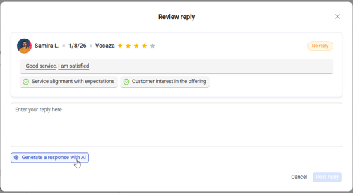 Respond directly to Google reviews from Vocaza, without switching between tools.