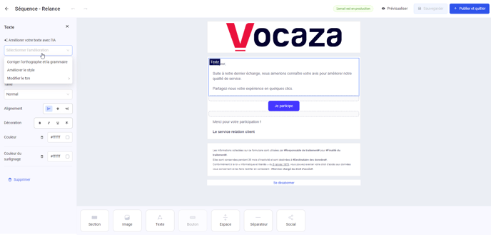 Journey permet d'utiliser l'IA pour reformuler les textes présents dans les e-mails de sollicitation.