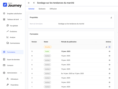 - Version affichée : vous pouvez sélectionner la version de votre enquête que vous souhaitez visualiser.