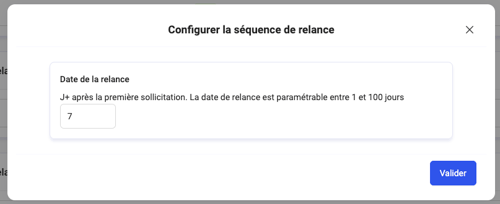 - Dans la fenêtre "Configurer la séquence de relance", ajustez la date en nombre de jours après la première sollicitation.