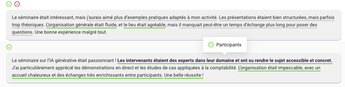 Suite à la mise à jour récente du moteur d'analyse sémantique, plusieurs évolutions ont été apportées pour une meilleure lisibilité et compréhension des commentaires :