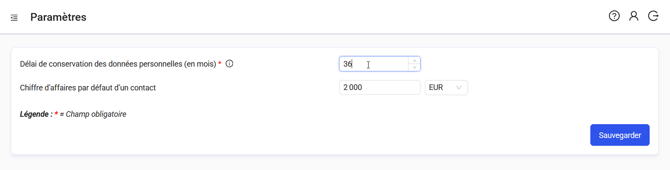 La durée de conservation des données à caractère personnel est désormais paramétrable entre 1 mois et 60 mois.