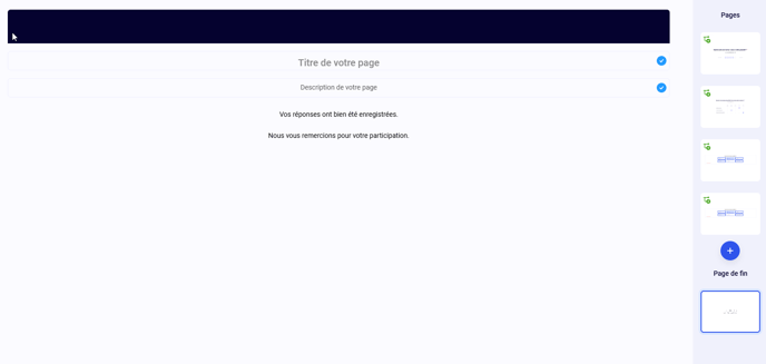 Vous pouvez désormais personnaliser la page de fin ou de remerciement de vos enquêtes pour renforcer l’engagement des répondants après leur participation.