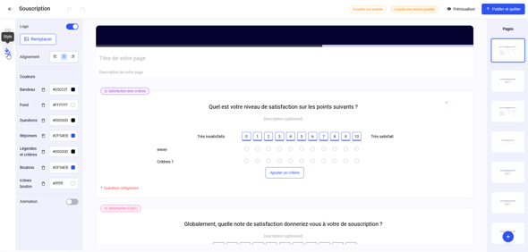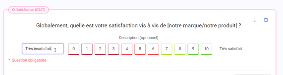 Il est désormais possible d'éditer la légende des échelles des questions. Par exemple, pour une échelle de satisfaction de 0 à 10, vous pouvez changer les libellés "Très insatisfait" et "Très satisfait".